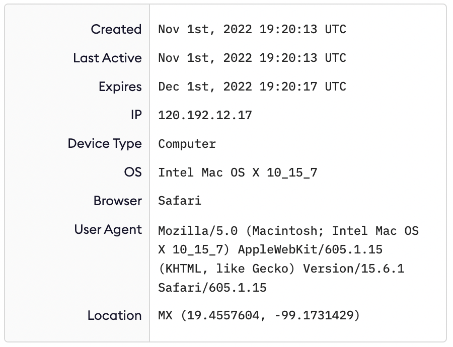Note: You can also programmatically investigate and revoke user sessions using the App User and Session APIs. For example, to revoke a session: