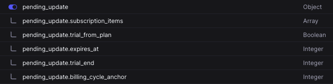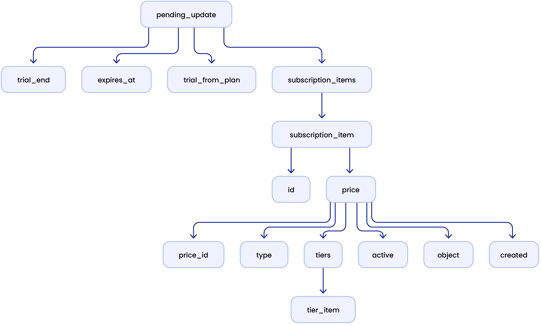 type = "struct<trial_end:bigint,expires_at:bigint,trial_from_plan:boolean,subscription_items:array<struct< //...As well as several fields in the target table, mapping the to aforementioned flat fields: