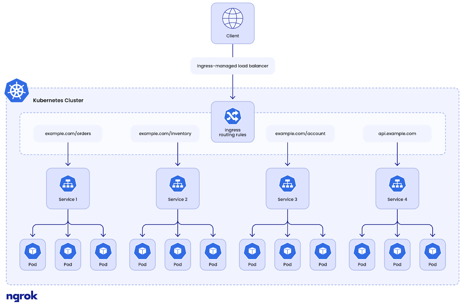 Ingress controllers can update routing rules immediately as pods are added or removed from the cluster, always directing traffic to healthy backend services. The ingress controller constantly monitors the state of the pods in the cluster and automatically adjusts the load balancing to distribute traffic evenly among the active pods.