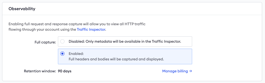 When we rolled out the ability to capture and view traffic to your HTTP endpoints, we started with a small lookback window of three days on purpose. Building a system to capture the sheer volume of traffic we process on a per minute basis comes with a lot of challenges, and we didn’t know how this experience would perform for users with any significant amount of traffic.