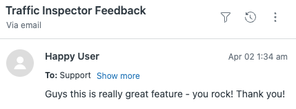 We are also very grateful to the thousands of users who have been using our developer preview of traffic inspector and providing feedback. Thank you. Without your input, we can’t build an amazing product. We’ve also enjoyed reading about how much our users love the power of our platform.