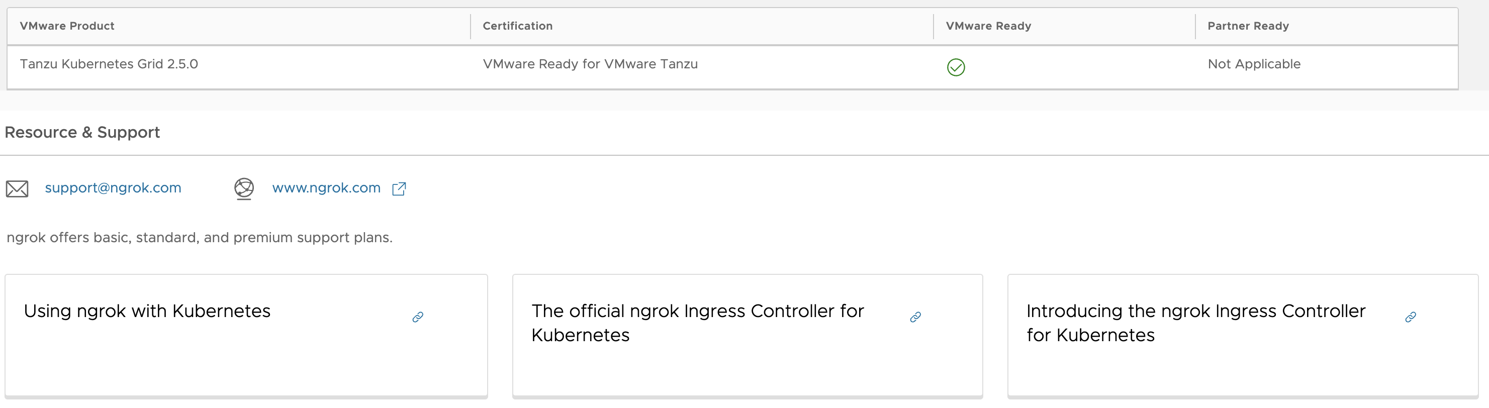 ngrok Ingress Controller for Kubernetes is certified in the VMWare Tanzu Marketplace