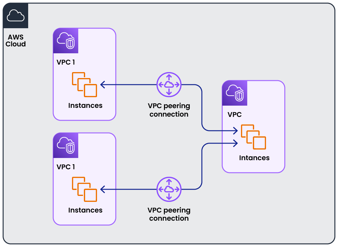 Second, to share resources from a single centralized VPC. In this hub-and-spoke architecture, a central VPC (hub) can share common resources such as databases, DNS, and other services with multiple spoke VPCs via VPC peering.