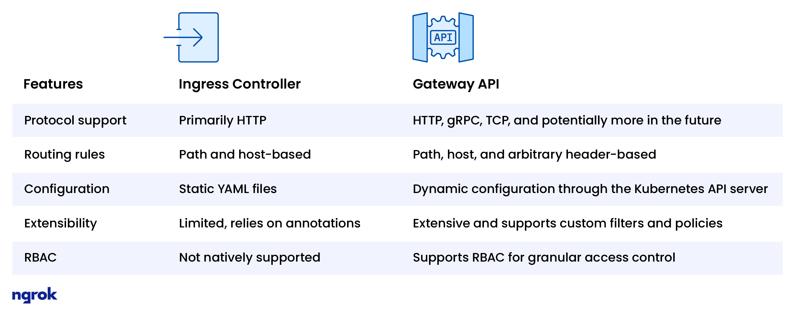 One thing to note, the Gateway API is not a feature in and of itself. It’s a standard to define how vendors and projects should create their own implementations. For instance, ngrok has a Gateway API implementation as part of our Kubernetes operator (which also features an ingress controller as well).
