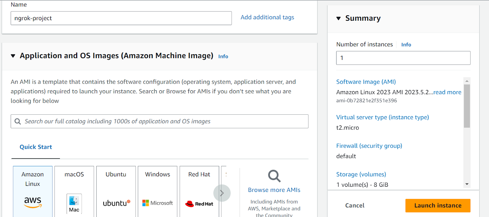 Give your EC2 instance a name—going with the same ngrok-project is fine.