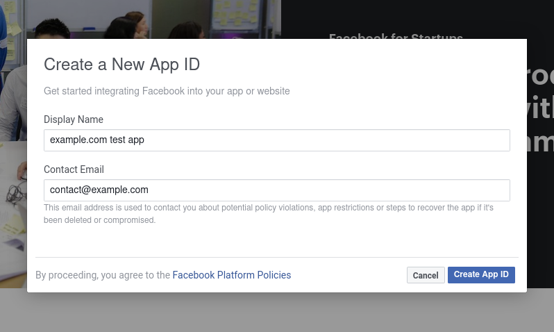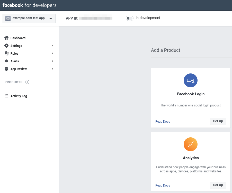 For additional assistance, see the Facebook app registration documentation.- Visit the App Dashboard, log in, and convert your account into a developer account if necessary.