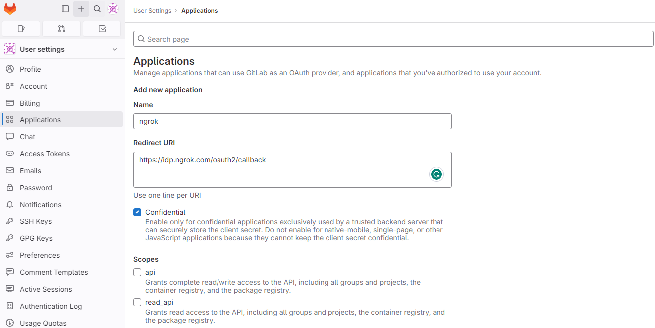 Configure GitLab OAuth with ngrok