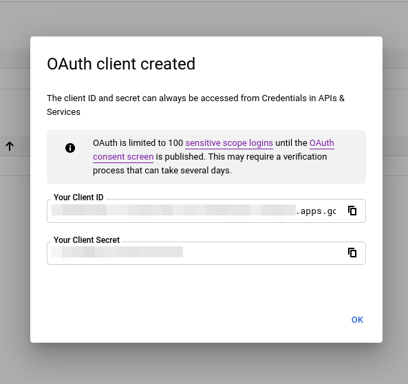 - Google OAuth 2.0 Web Server (prerequisite steps)