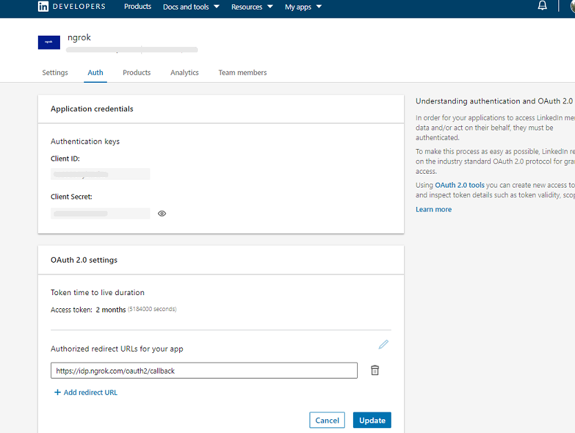 The step-by-step instructions below follow LinkedIn’s documentation on setting up OAuth 2.0 for a web application.Create credentials for ngrok