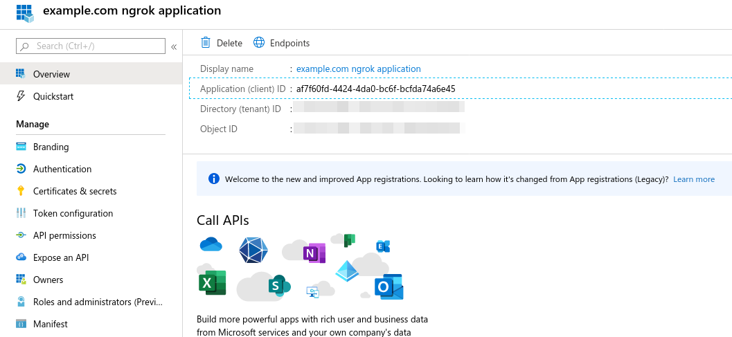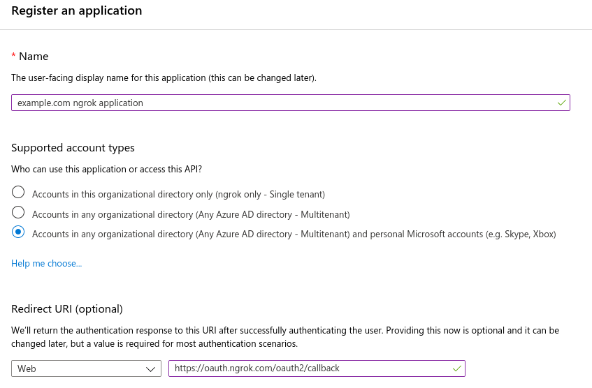 Step-by-step instructions below closely follow Microsoft documentation to create a new application for ngrok within the Azure portal.Register an application